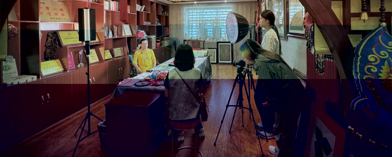 拍攝團隊與堂坊疊繡傳承人