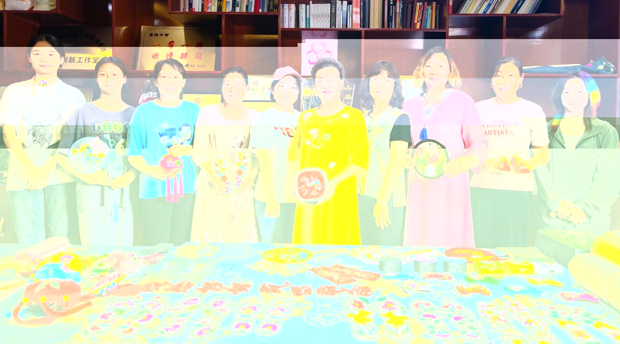 楊钿老師帶領的繡娘們與拍攝團隊合影